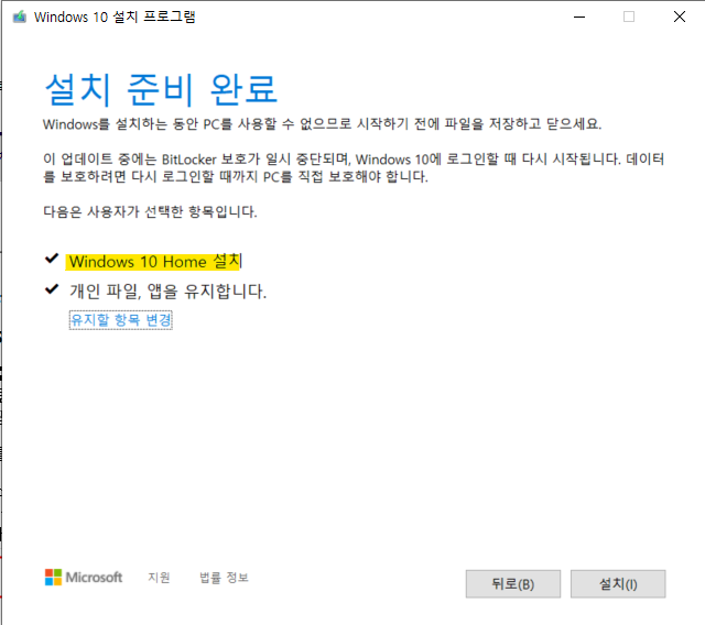 이때 Windows 10 Home 설치라고 뜨면 무사히 Windows 10 Home이 설치될 준비가 되었다는 뜻이다.