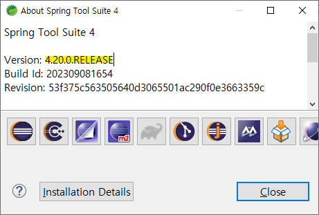 Spring Tools 3 Add-On for Spring Tools 4의 마지막 버전인 3.9.22 RELEASE는 STS 4.14.1 RELEASE에서 실행 가능하다.